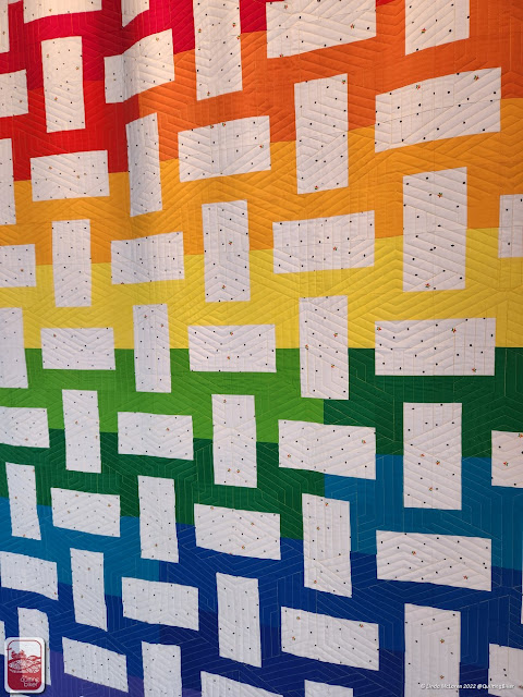 The finished quilt is a beautiful progression through all the rainbow colours, with the fabulous texture created by the pantograph. We selected Hab 'n Dash Glide "Sunshine" thread. It's a very bright yellow. Yet it doesn't overpower the quilt at all.